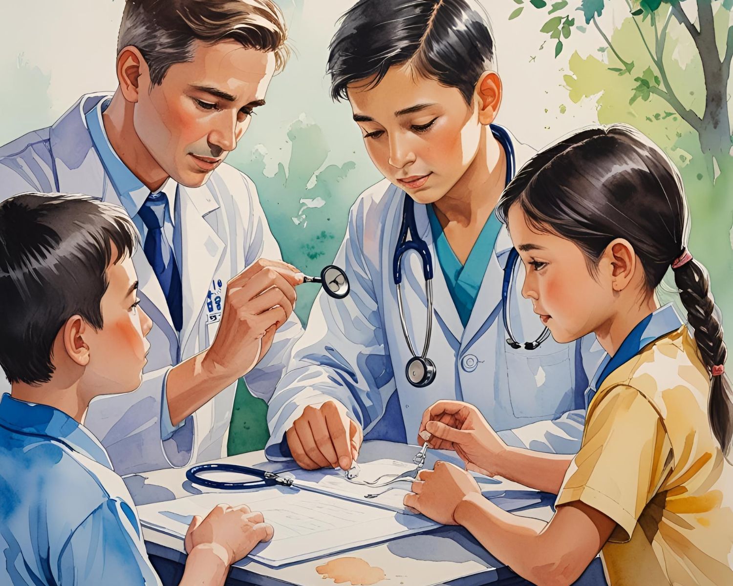શાળામાં હેલ્થ ચેકઅપ કેમ્પ દ્વારા વિદ્યાર્થીઓના આરોગ્યની તપાસ કરવામાં આવે છે.